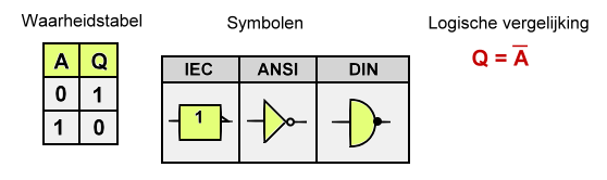 NIET-poort (NOT) De NIET-poort is de inverse functie van de buffer.