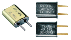 Een andere toepassing is een filter waarbij alleen een bepaalde frequentie wordt doorgelaten (of tegengehouden). Door de hoge Q-factor van het kristal kan een kleine bandbreedte bij een relatief hoge frequentie gerealiseerd worden. Meestal is het kristal in een metalen behuizing geplaatst. Tegenwoordig zijn er ook miniatuurkristallen in een kunststof behuizing, waarbij soms de elektronica voor het maken van de golfvorm geïntegreerd is. Voor het verhogen van de nauwkeurigheid wordt het kristal soms in een klein oventje geplaatst, hiermee wordt de kleine afhankelijkheid van de omgevingstemperatuur geëlimineerd. Er zijn vele toepassingen waarbij een constante frequentie noodzakelijk is, bijvoorbeeld bij radiozenders en -ontvangers, in computers, bij mobiele telefoons, in kwartshorloges, enz. | |