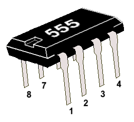 Men hoeft voor deze schakeling slechts een weerstand R en een condensator C aan te sluiten. Op een negatief gaande puls op de trigger start de timer en de uitgang wordt hoog. De ontlaadtransistor geleidt niet meer dus de C kan zich via de weerstand R opladen. De spanning over C stijgt exponentieel volgens de bekende laadkromme totdat hij 2/3 van Vcc bereikt (de thresholdspanning) en de flipflop omklapt; de uitgang wordt nu laag. De tijdconstante is in dit geval T=1,1RC. T in seconden, R in Ohm en C in Farad. De transistor ontlaadt de condensator en de schakeling staat weer klaar voor een nieuwe cyclus