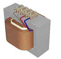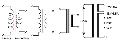| Een transformator (veelal afgekort tot trafo (NL) of transfo (B)) is een statisch (dat wil zeggen zonder bewegende onderdelen) elektrisch apparaat, bestaande uit magnetisch gekoppelde spoelen. Stuurt men een veranderlijke stroom door een van de spoelen, de primaire spoel genoemd, dan wordt in de andere spoel(en), de secundaire, een spanning opgewekt. Een belangrijke toepassing is het omzetten van een hogere wisselspanning, zoals de netspanning, naar de gewenste lagere wisselspanning. | |