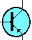 Het schemasymbool voor de transistor ziet er als onder getekend ongeveer uit. Dikwijls wordt de transistor