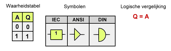worden van de positieve logica, dus waar een logische 1 voorgesteld zal worden door een 1 en een logische 0 zal