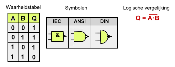 NEN-poort (NAND) De NEN-poort geeft enkel 1 indien minstens één ingang 0 is, dit is de inverse van de EN-poort.