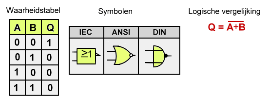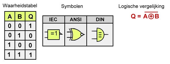 Exclusieve NOF-poort (XNOR) De exclusieve NOF-poort (XNOF) geeft 1 indien beide ingang gelijk zijn aan elkaar. Dit is het inverse gedrag van de exclusieve OF-poort.